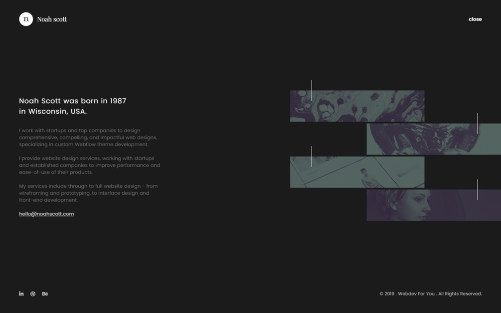 Welcome to Noah Scott - a fully responsive, clean, and professional Webflow template perfect for Web Designers to showcase their portfolio.